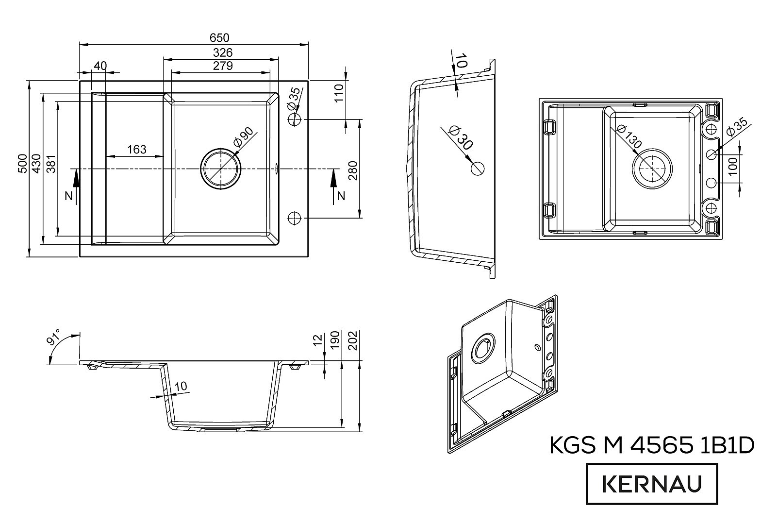 • Zlewozmywak granitowy Kernau KGS M 4565 1B1D Graphite