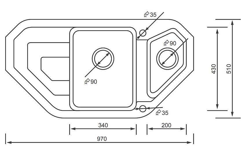 Dzięki tej funkcji zlewozmywak może być zamontowany z ociekaczem po prawej lub po lewej stronie. Decyzję można podjąć podczas montażu produktu.