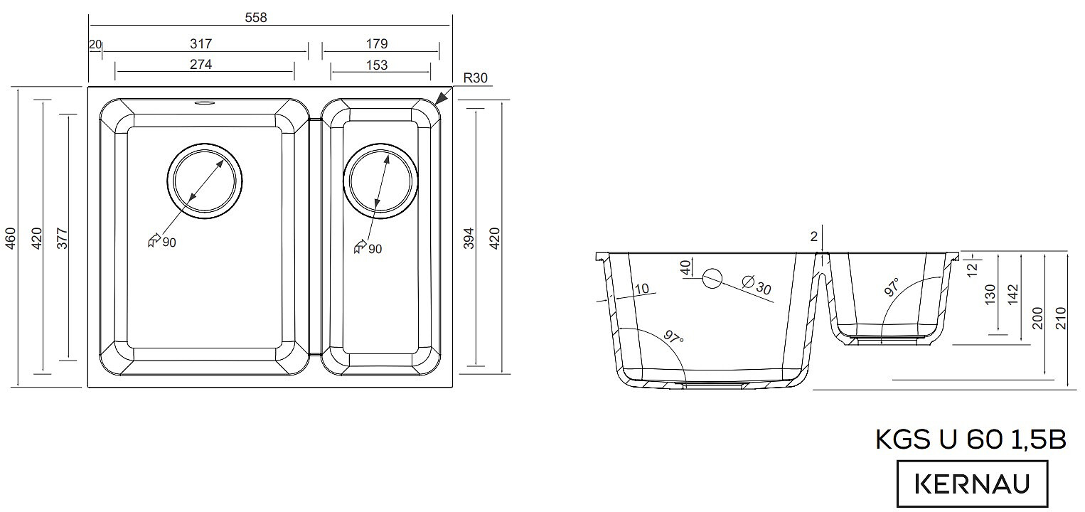Zlewy Kernau wyposażone zostały w oszczędzający miejsce syfon Saving Space. Dzięki niemu zyskujemy cenną przestrzeń do wykorzystania w małych kuchniach.