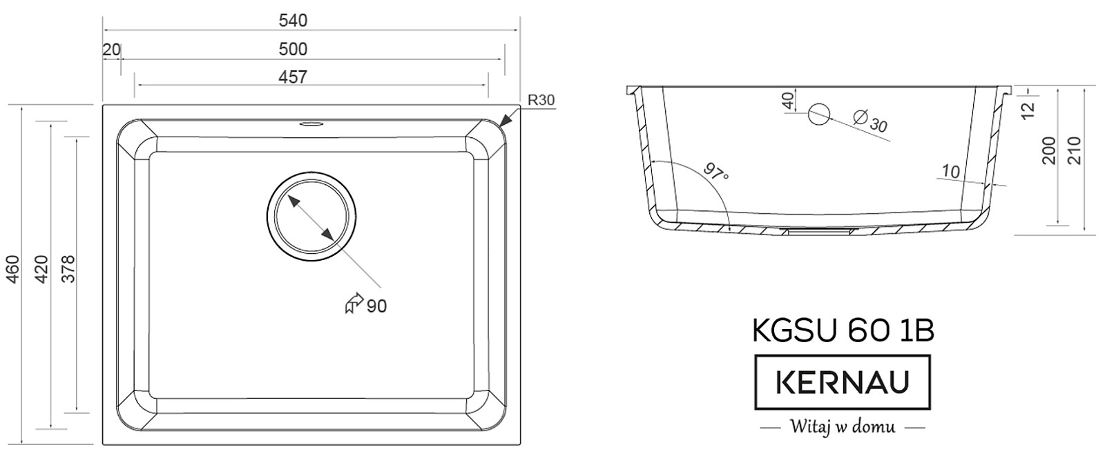 Typ zlewozmywakaPodblatowy