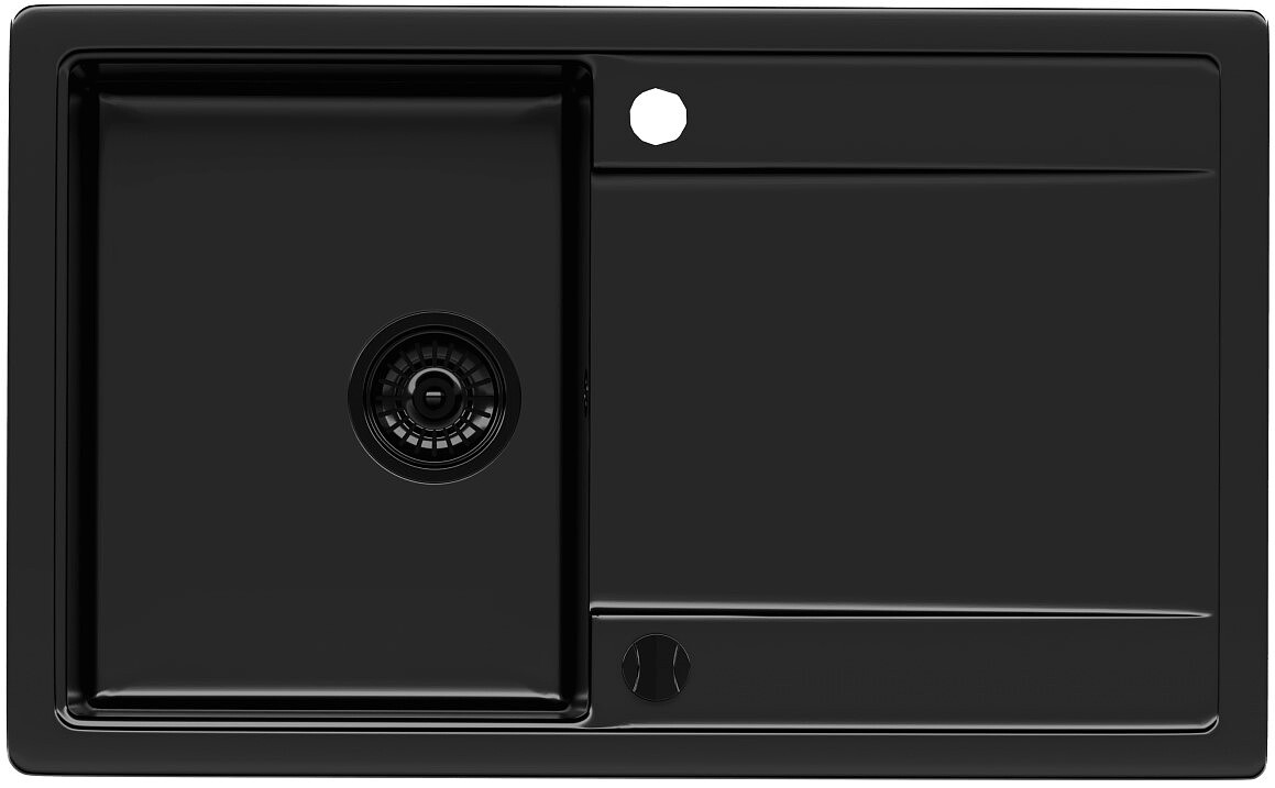Jest to zlewozmywak granitowy o wymiarach komory 32 x 38,5 x 18 cm. Kolor Deep Black wyróżnia się wysokim nasyceniem i jednolitą strukturą. Zlew ma dość spory ociekacz, na który odstawisz mokre naczynia lub umyte warzywa.