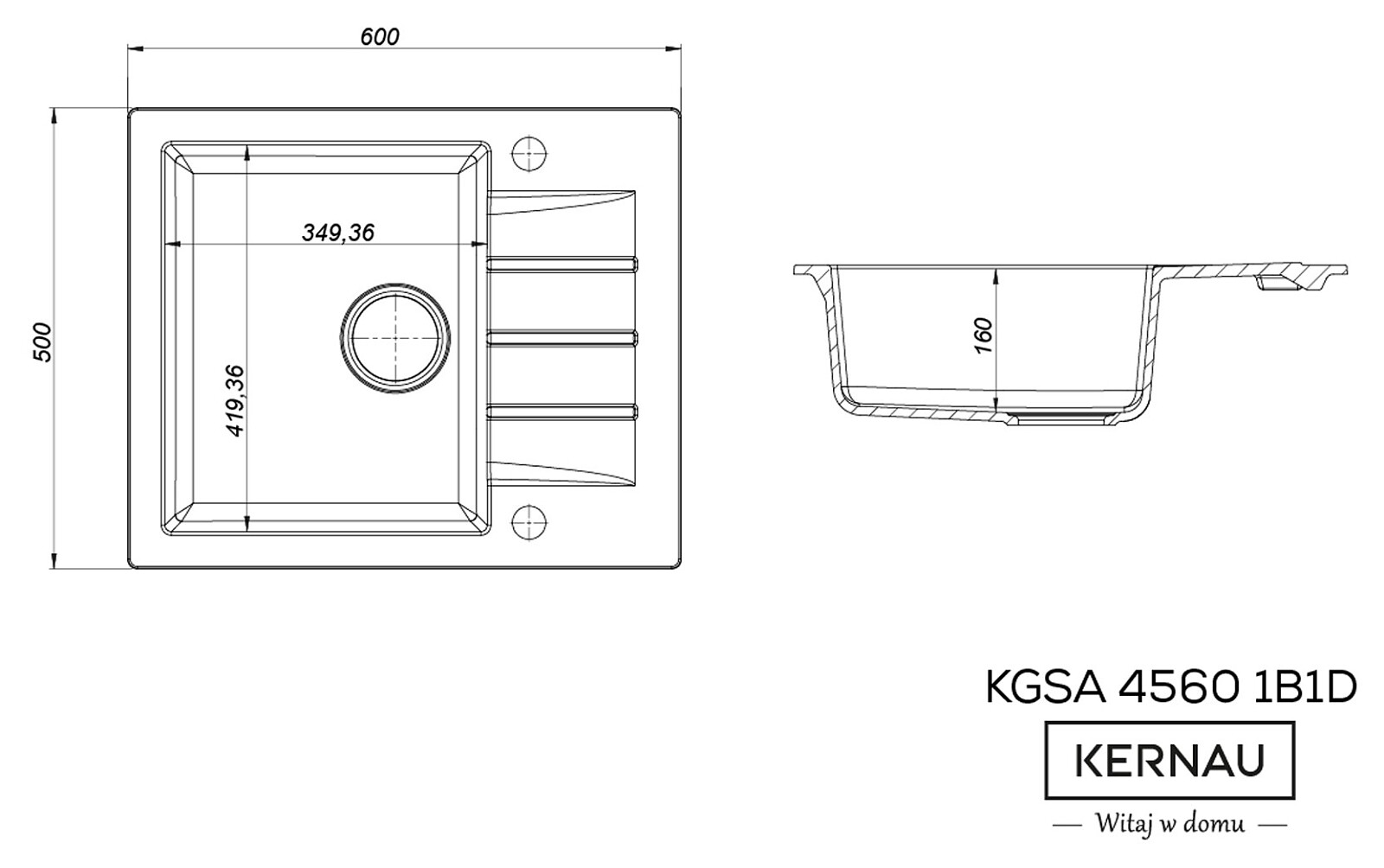 • Zlewozmywak granitowy Kernau KGS A 4560 1B1D Deep Black