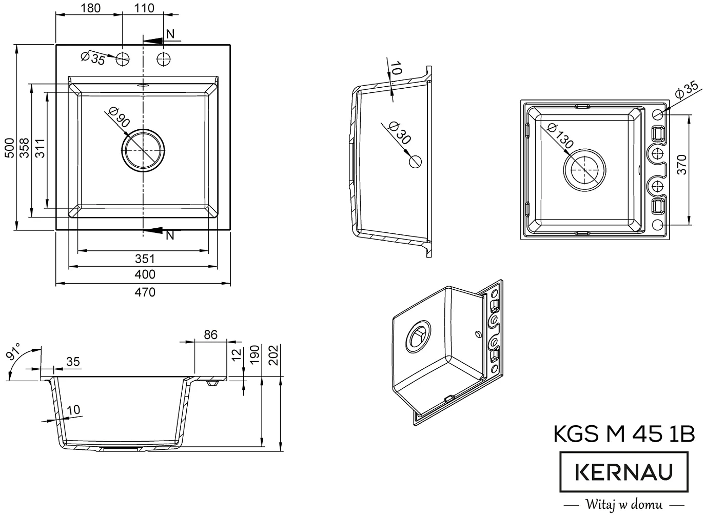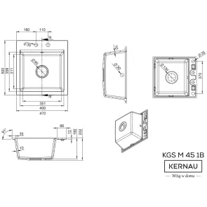 Zlewozmywak granitowy marki Kernau charakteryzuje się wyszukanym designem i wysoką funkcjonalnością. Wyposażony został w 1 komorę wraz z ociekaczem. Dostępny jest w następujących wersjach kolorystycznych: Sand, Graphite, Black Metallic, Pure White, Natural Beige oraz Deep Black+Gold Metallic.