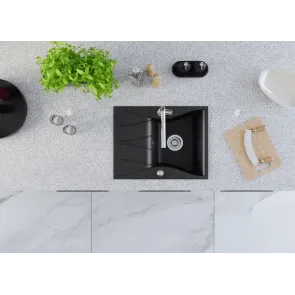 Zlewozmywak granitowy Kernau KGSO 4565 1B1D Jednokomorowy Black Metallic