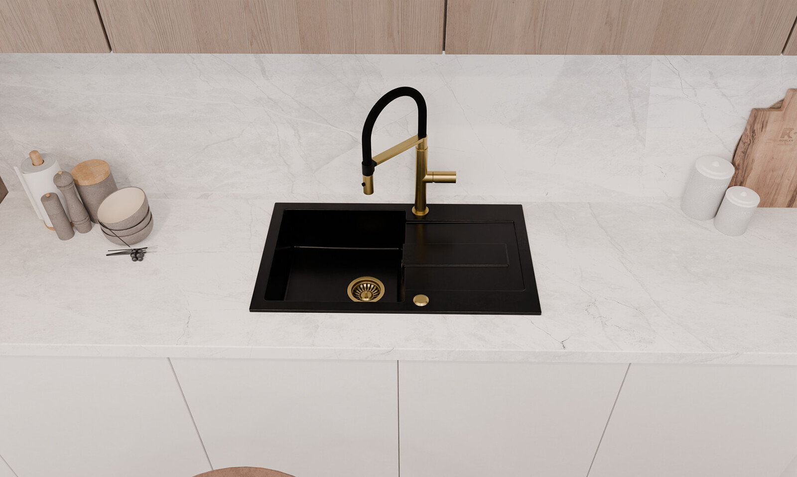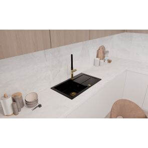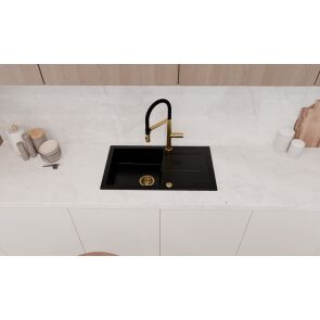 Wykonany z wysokiej jakości granitu, zlewozmywak jest odporny na uszkodzenia, szok termiczny i zabrudzenia. Głęboki czarny kolor doda Twojej kuchni elegancji i nowoczesnego charakteru.