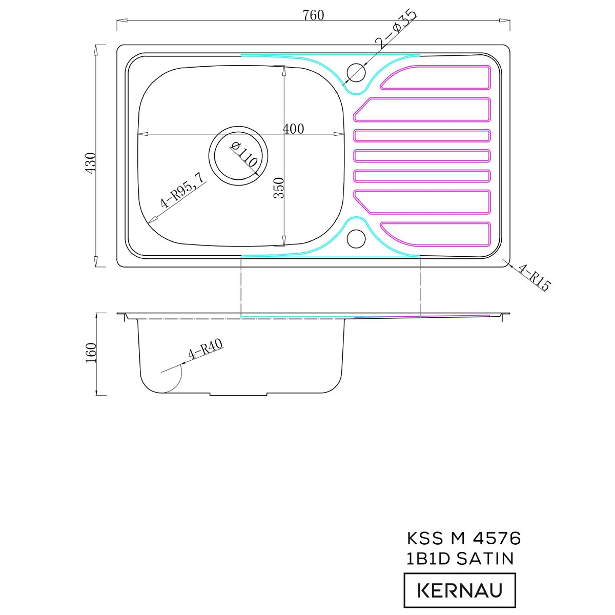 Zlewozmywak stalowy Kernau KSS M 4576 1B1D Satin