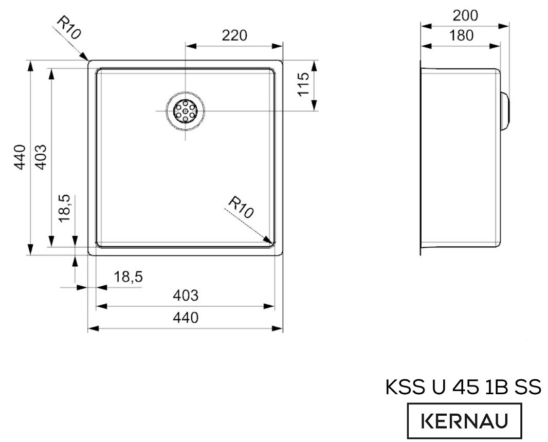 Jednokomorowy zlewozmywak stalowy Kernau KSS U 45 1B SS SMOOTH