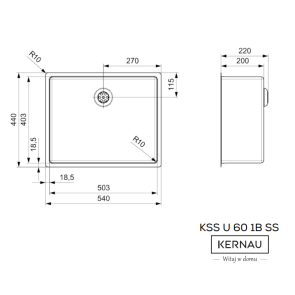 Zlew stalowy jednokomorowy KSS U 60 1B SS SMOOTH