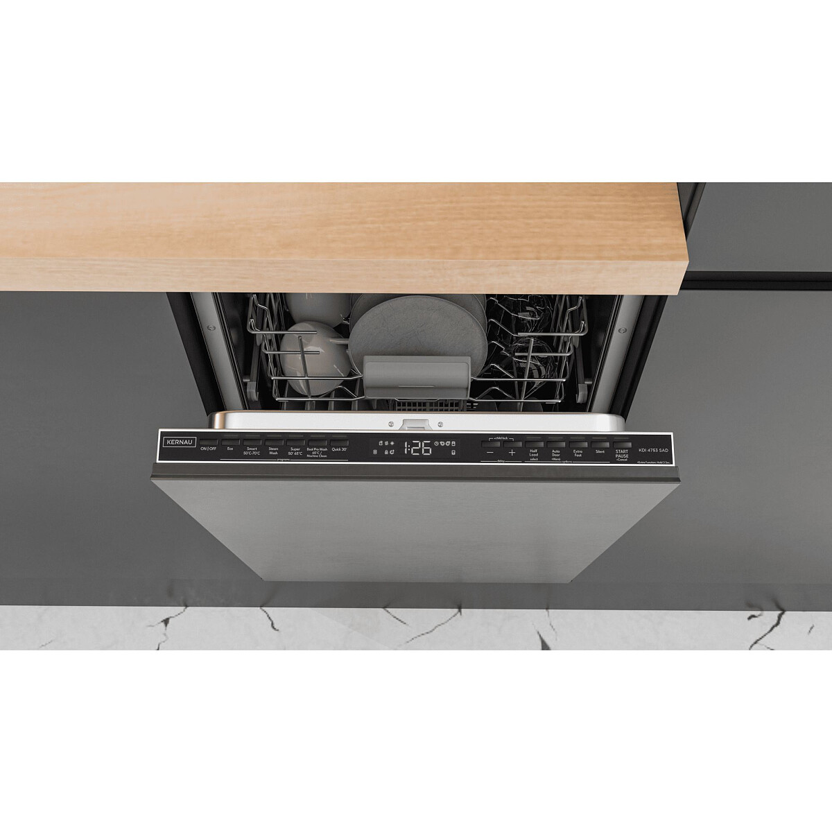 Rodzaje programówEco, Inteligentny 50°C-70°C, Zmywanie parowe, Super 50', Dual Pro Wash, Szybki 30', Samoczyszczenie