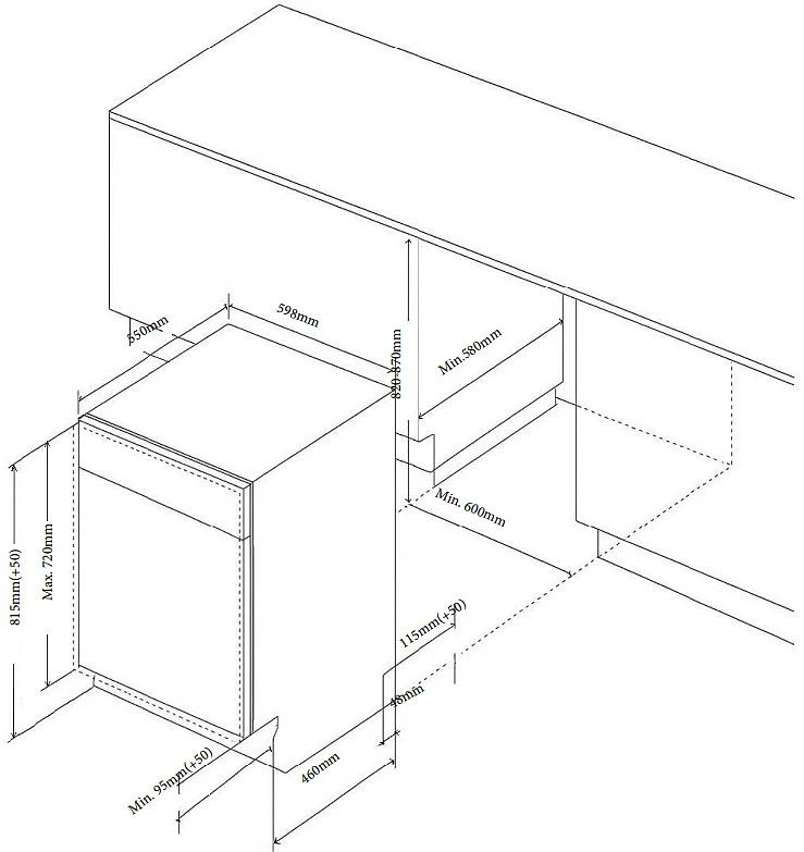 - WYMIARY (SZ x W x G): 598 X 870-820 X 550 MM