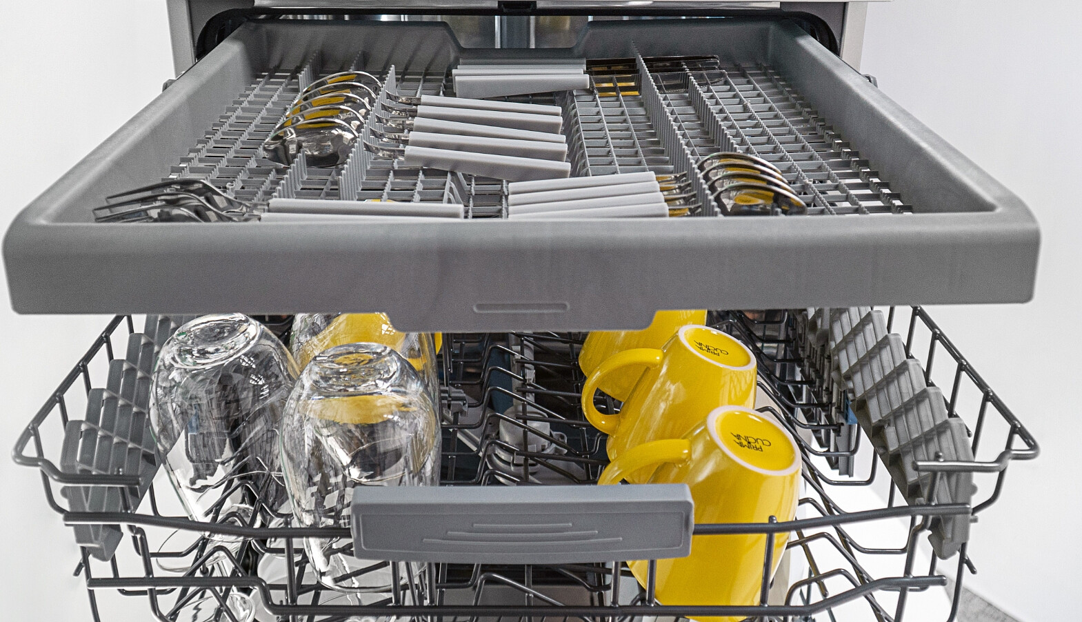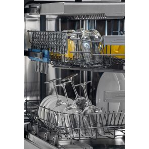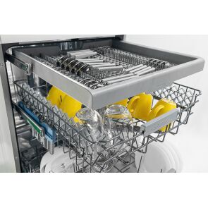 Dodatkowy kosz, umieszczony na samej górze zmywarki, został stworzony z myślą o jeszcze większej pojemności. Wyjmij dolny koszyk na sztućce i układaj je w najwyższym koszu, a zyskasz więcej miejsca na talerze czy garnki.