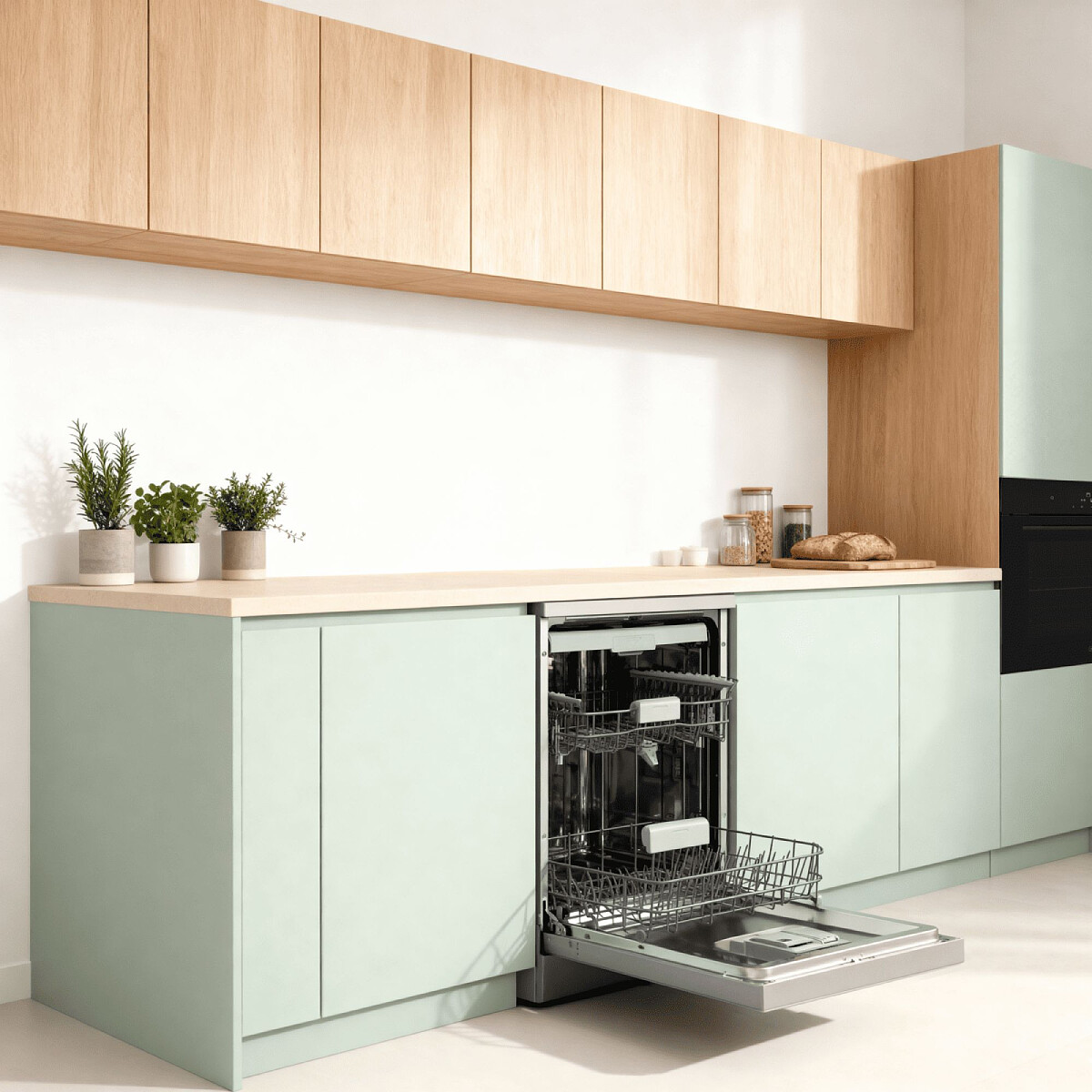 Z poziomem hałasu wynoszącym zaledwie 44 dB, zmywarka pracuje niemal bezszelestnie – idealnie sprawdzi się w kuchniach otwartych na salon lub przy nocnym trybie zmywania. Funkcja połowy załadunku pozwala na uruchomienie cyklu przy mniejszej liczbie naczyń, oszczędzając wodę i prąd. Opóźnienie startu umożliwia zaplanowanie pracy urządzenia na dogodną porę – np. na godziny z niższą taryfą energii.