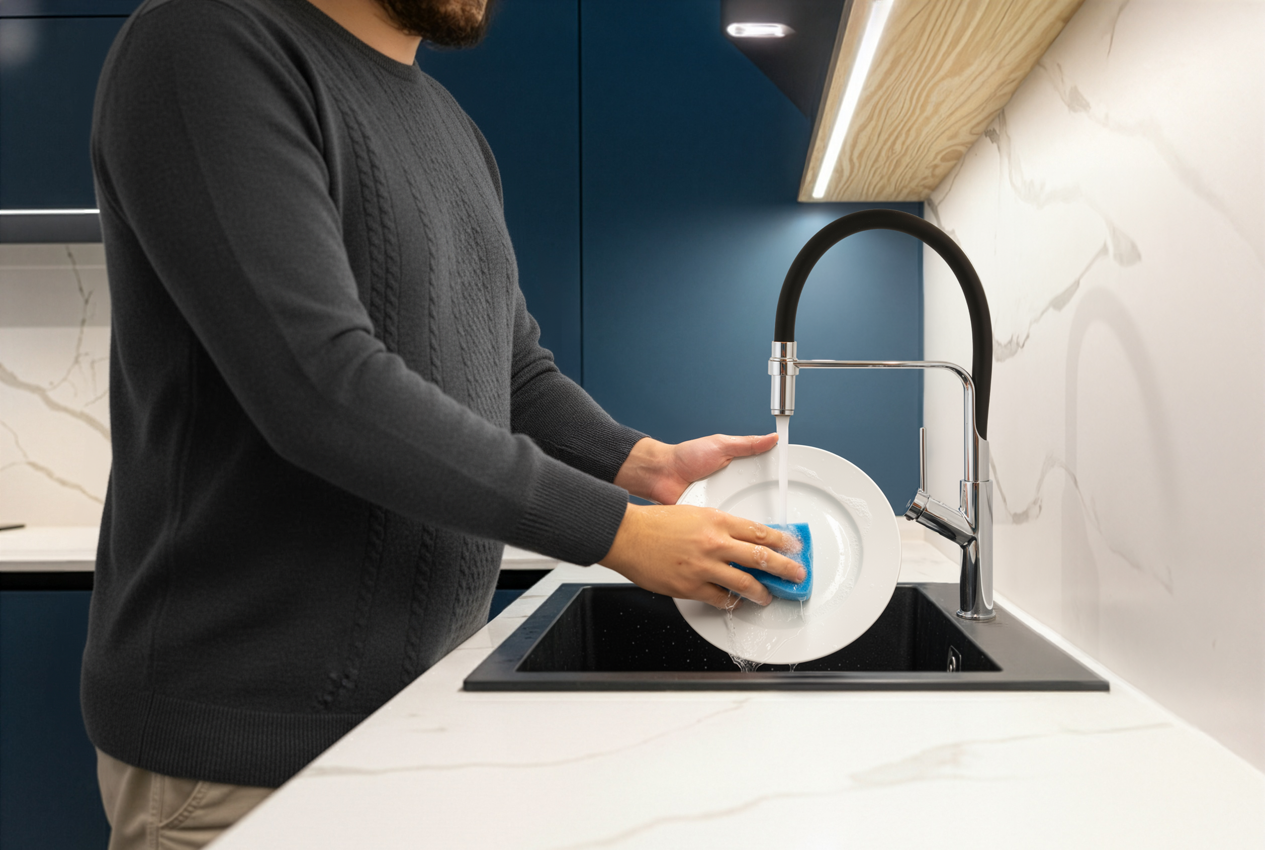 Wylewka obraca się w zakresie 360°, a elastyczna wylewka daje pełną kontrolę nad kierunkiem strumienia – niezależnie od tego, czy napełniasz wysoki garnek, czy płuczesz warzywa. Po użyciu końcówkę wystarczy odłożyć na stabilny uchwyt zamocowany przy korpusie baterii, który utrzymuje ją w pozycji gotowej do ponownego użycia – bez luźno opadających elementów i potrzeby ręcznego ustawiania.