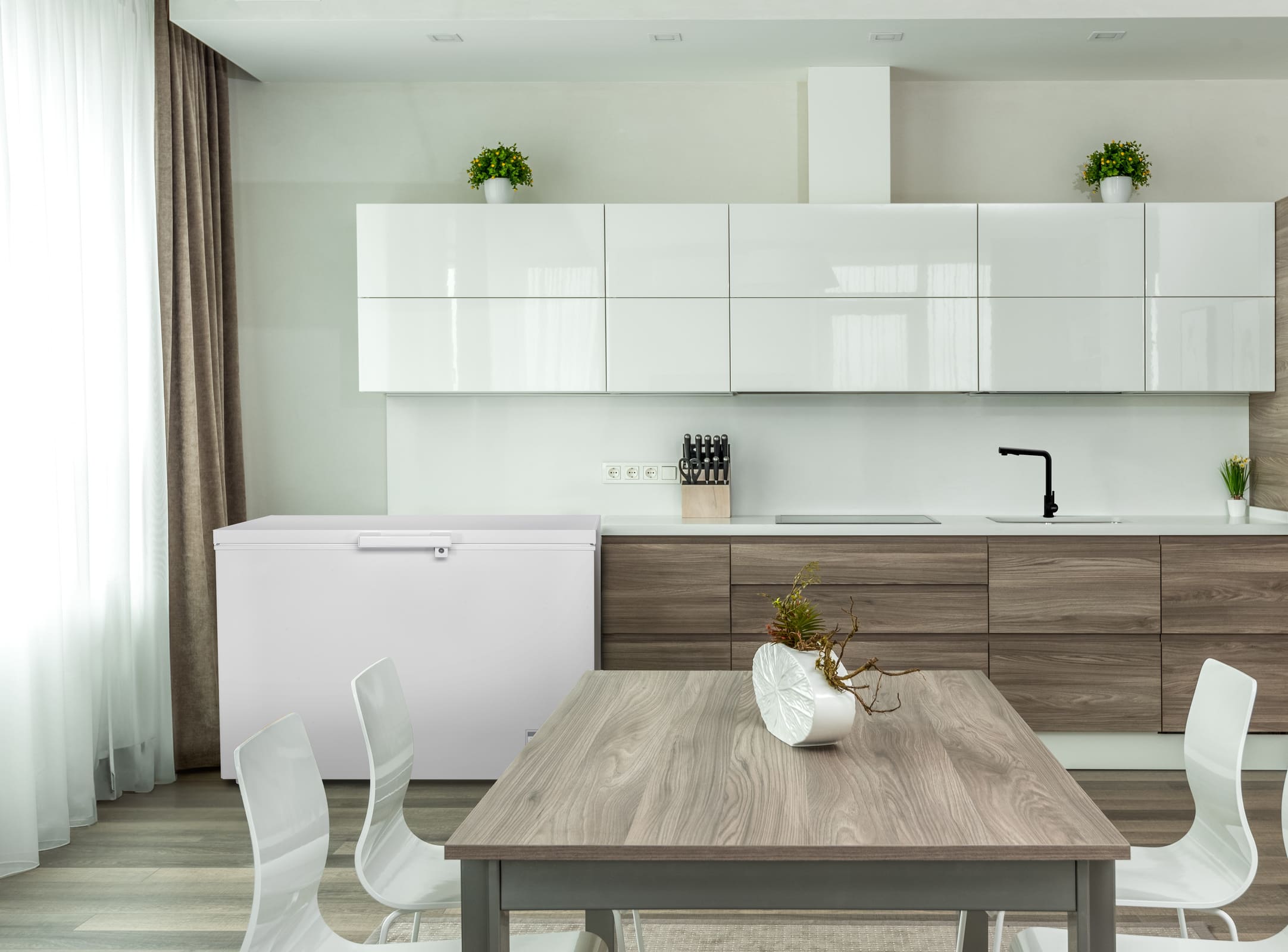 Zamrażarka to urządzenie o wysokiej klasie efektywności energetycznej E. To gwarancja niskich kosztów użytkowania. Wnętrze o pojemności 287 litrów pozwoli przechować spore ilości żywności. Marka Kernau wyposażyła swoją zamrażarkę w funkcję Super Freeze. Funkcja ta obniża temperaturę, dzięki czemu w krótkim czasie schłodzisz potrawy lub napoje.