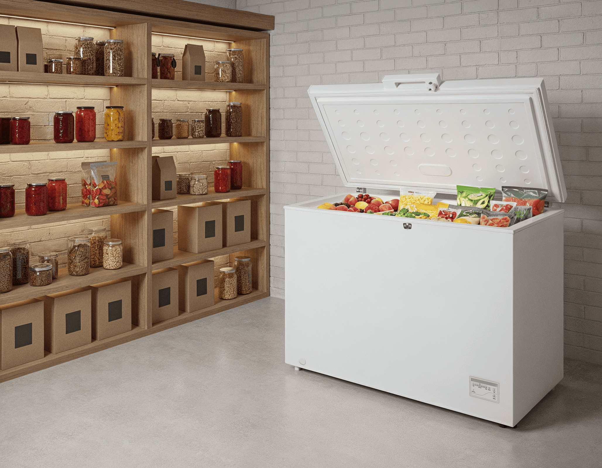 Na w pełni komfortowe korzystanie ze sprzętu pozwalają zawiasy z balansem pokrywy. Dzięki nim, pokrywa po otwarciu i ustawieniu w najwygodniejszym dla Ciebie położeniu, nie opada. Nie musisz więc jej przytrzymywać, masz swobodne obie ręce. Ponadto, po otwarciu pokrywy włączy się samoczynnie oświetlenie wnętrza. Możesz więc bez obaw ustawić zamrażarkę w słabo oświetlonym pomieszczeniu. Zamrażarkę ustawisz według swoich potrzeb za pomocą czytelnego elektronicznego panelu sterowania.