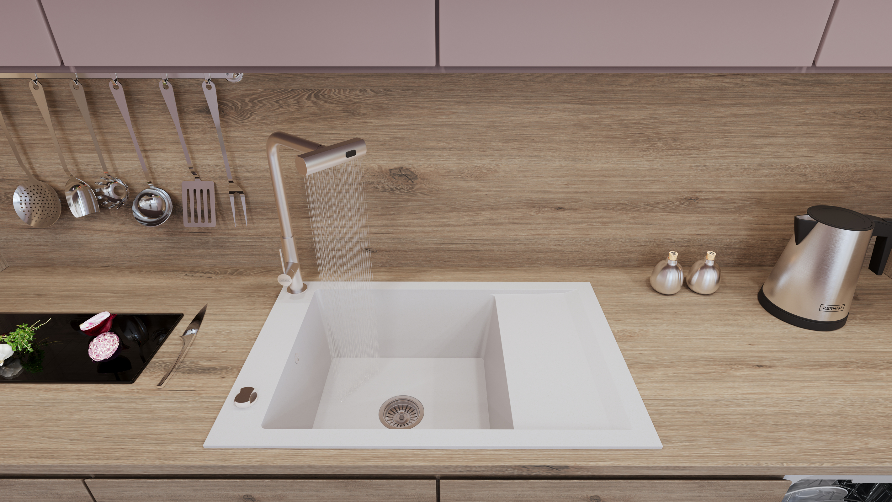 Zlewozmywak KGS M 6078 1B1D Natural Beige cechuje wyjątkowa elegancja i trwałość. Został zaprojektowany z myślą o wygodzie użytkowania. Granit to jeden z najlepszych materiałów na rynku, który jest odporny na zarysowania oraz szok termiczny. To idealny wybór dla osób poszukujących połączenia estetyki z funkcjonalnością. Jest to rozwiązanie, które spełni oczekiwania nawet najbardziej wymagających użytkowników, pragnących połączyć praktyczne aspekty codziennego użytkowania z subtelnym i eleganckim designem.