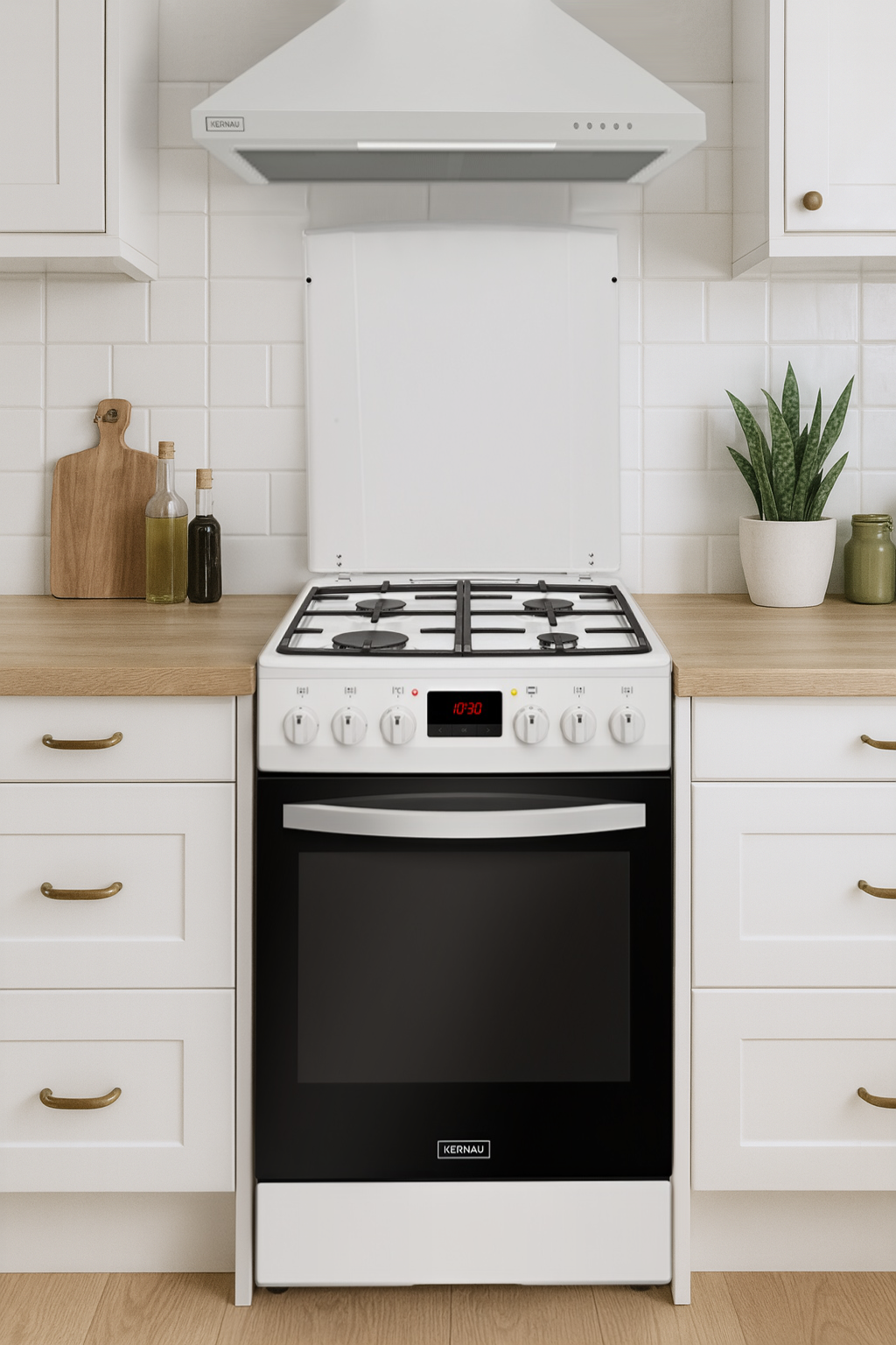 Kuchenka wolnostojąca KERNAU KFC 5081 GE CI W – Mocny palnik, termoobieg i klasa energetyczna A