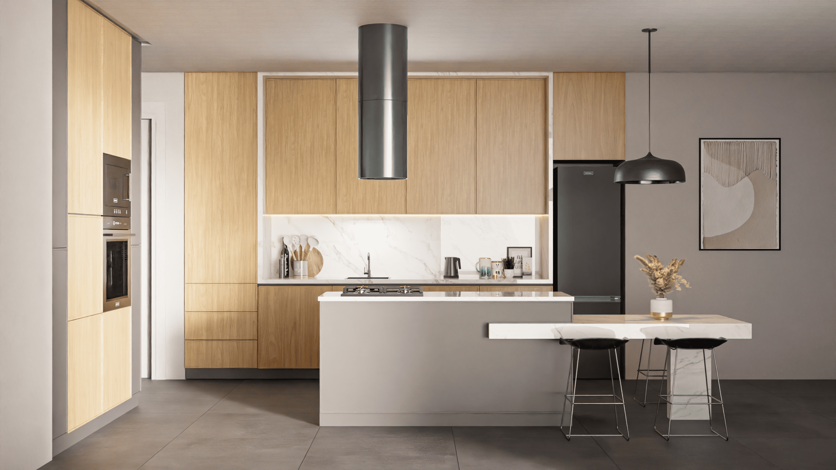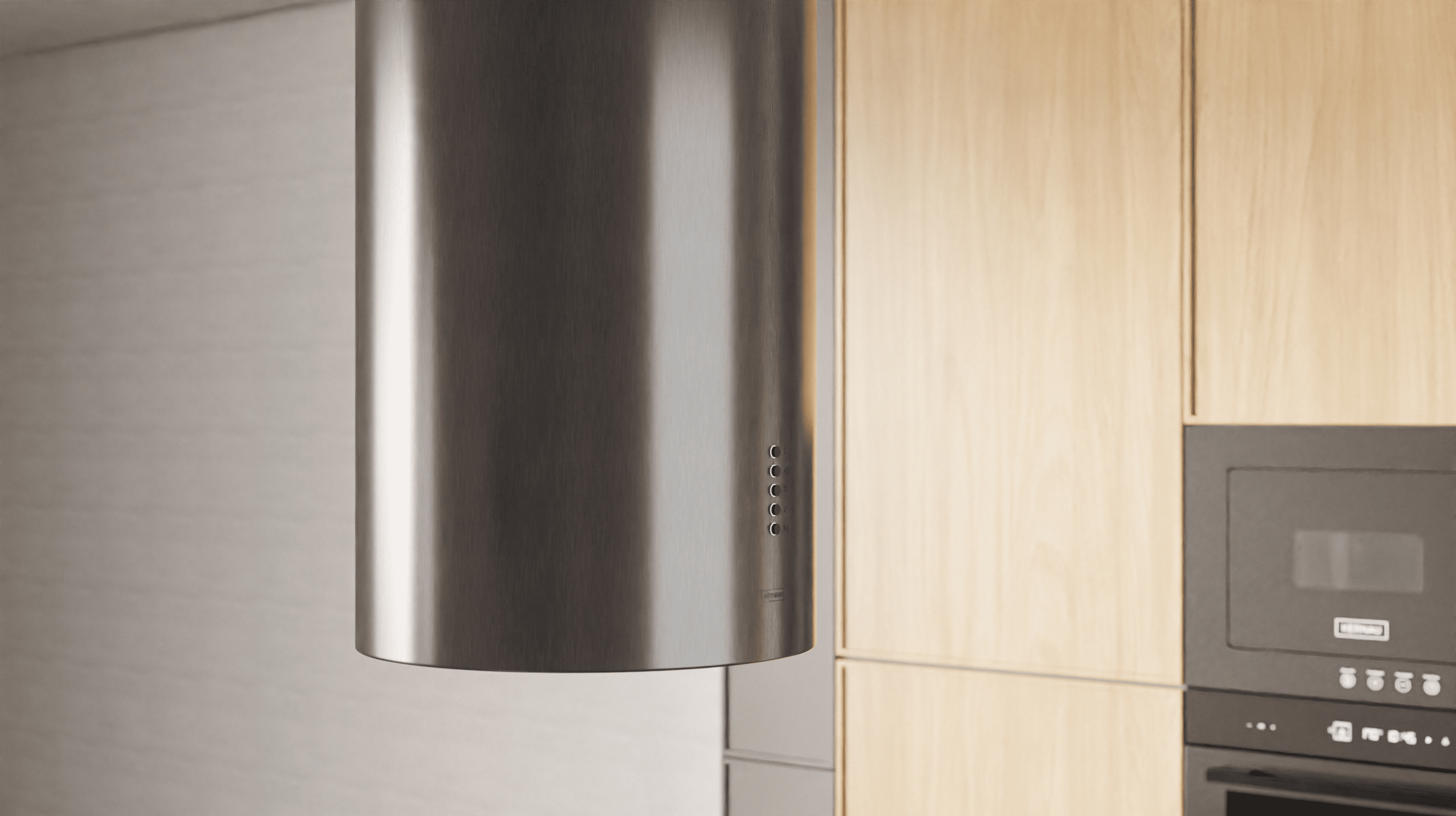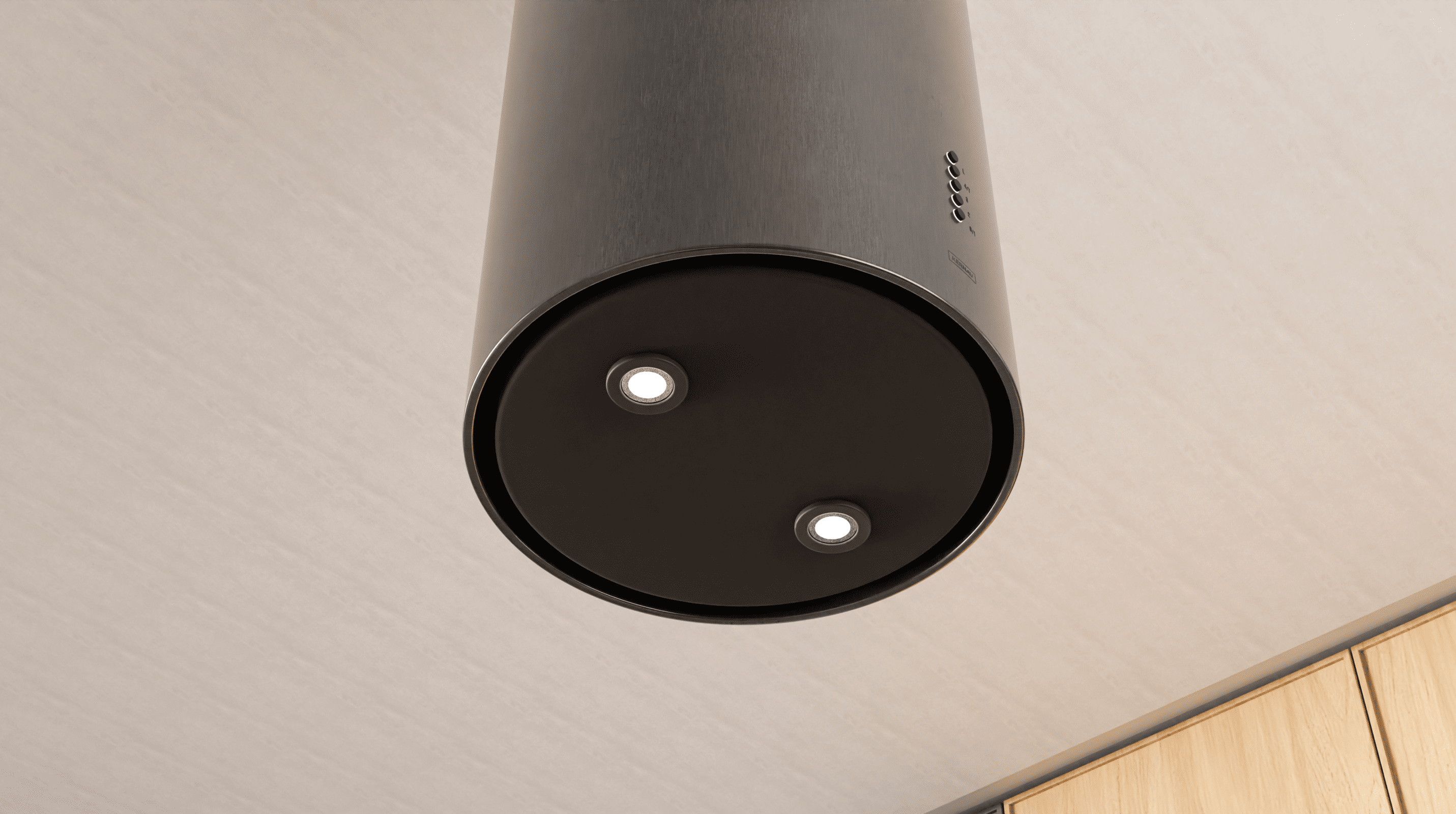 Wyspowy okap KCH 0440 Copper Island w kształcie tuby to urządzenie o bardzo wysokiej wydajności, wynoszącej 767 m3/h. Wyróżnia go nasycone wykończenie w kolorze ciemnej stali. Swoim wzornictwem urządzenie wpisze się w style od industrialnego, poprzez nowoczesny i rustykalny, aż po glamour.