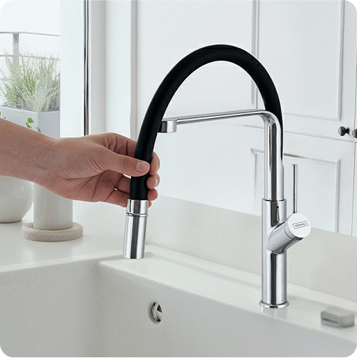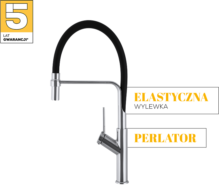 Elastyczna, gumowa wylewka z możliwością obrotu sprawia, że korzystanie z baterii staje się wyjątkowo wygodne. Jej nowoczesna forma łączy estetykę z funkcjonalnością, idealnie dopasowując się do nowoczesnych kuchni.