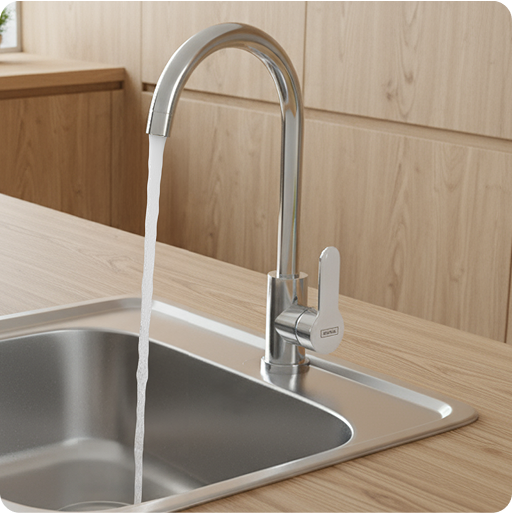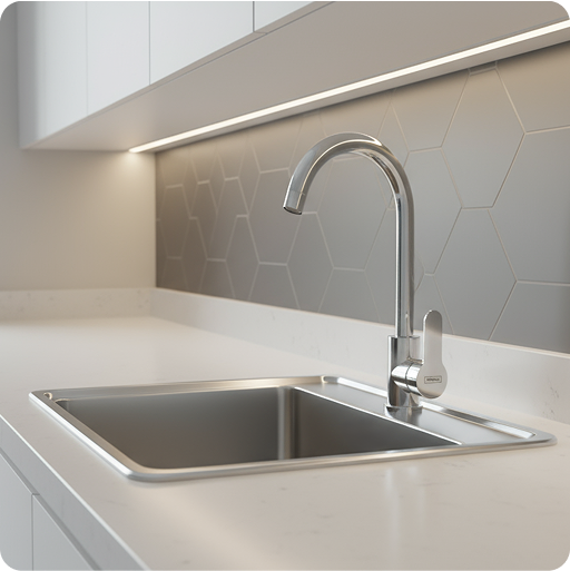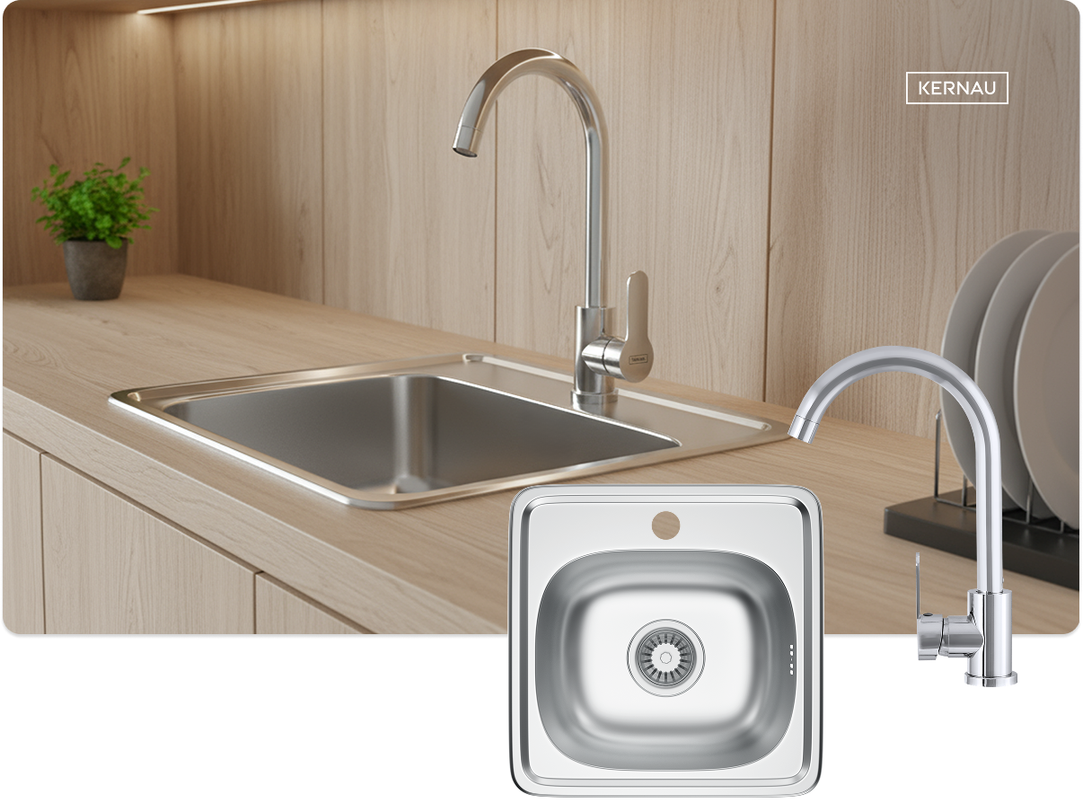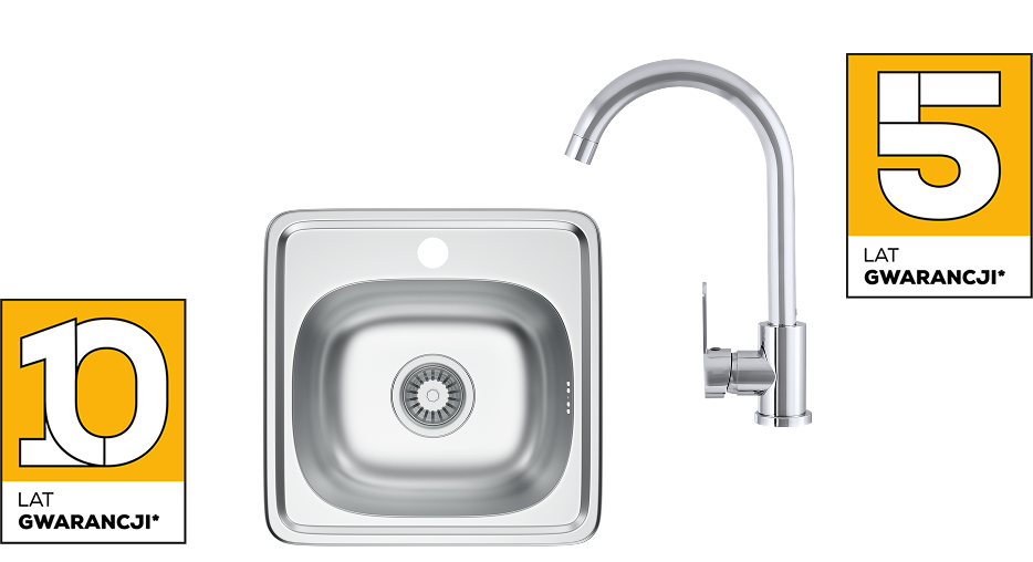 Zarówno zlewozmywak, jak i bateria wykonane są z wysokiej jakości stali nierdzewnej, zapewniającej trwałość, higienę i łatwość czyszczenia.