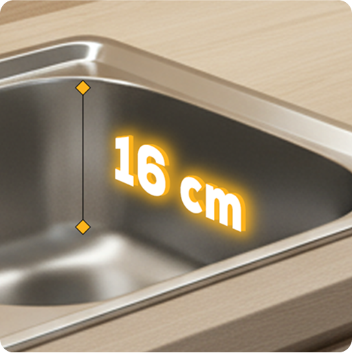 Głęboka komora zlewozmywaka o wysokości 16 cm umożliwia wygodne mycie dużych naczyń, garnków czy patelni. Dzięki temu codzienne zmywanie staje się szybsze i bardziej komfortowe, a wysoki rant ogranicza rozchlapywanie wody, pomagając utrzymać czystość w kuchni.